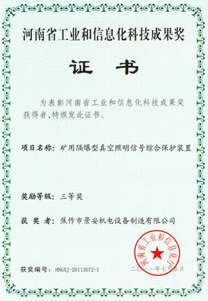 LED灯省工业和信息化科技成果证书
