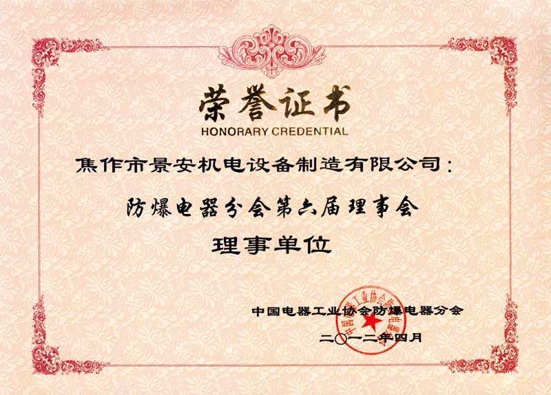 防爆电器分会理事单位证书