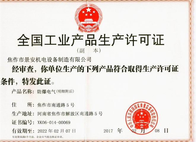 工业产品生产许可证