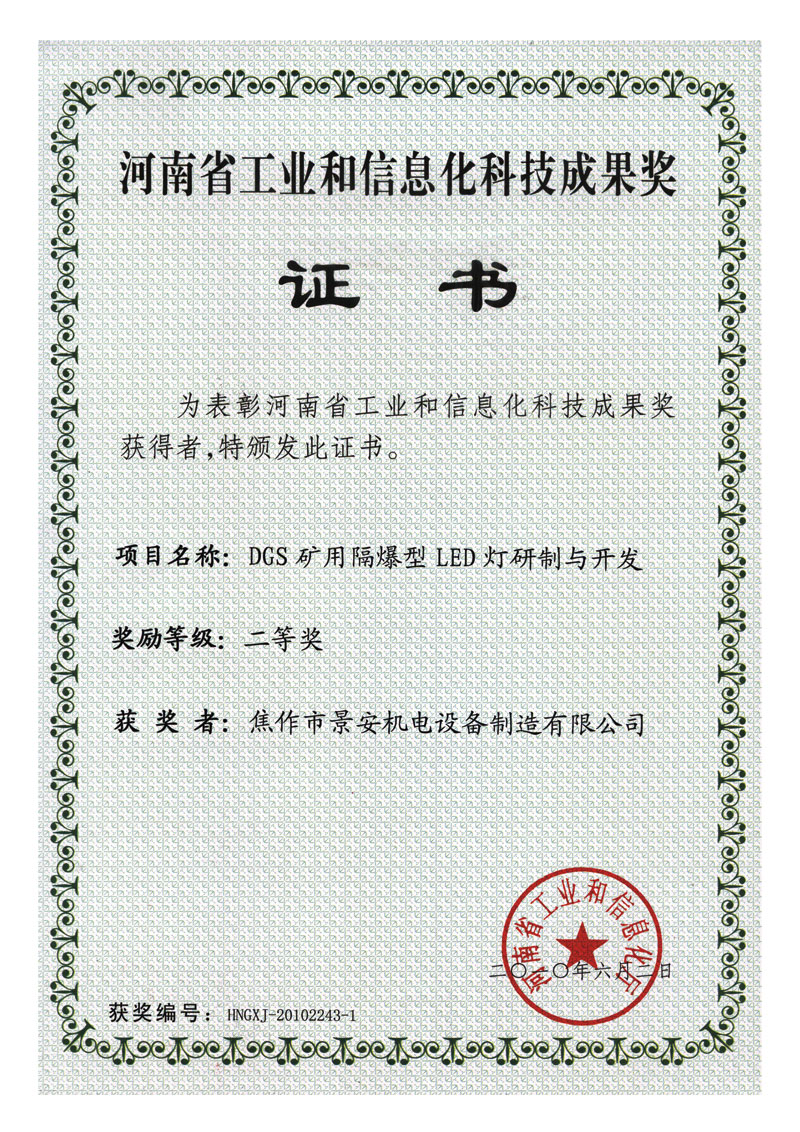 LED灯省工业和信息化科技成果证书