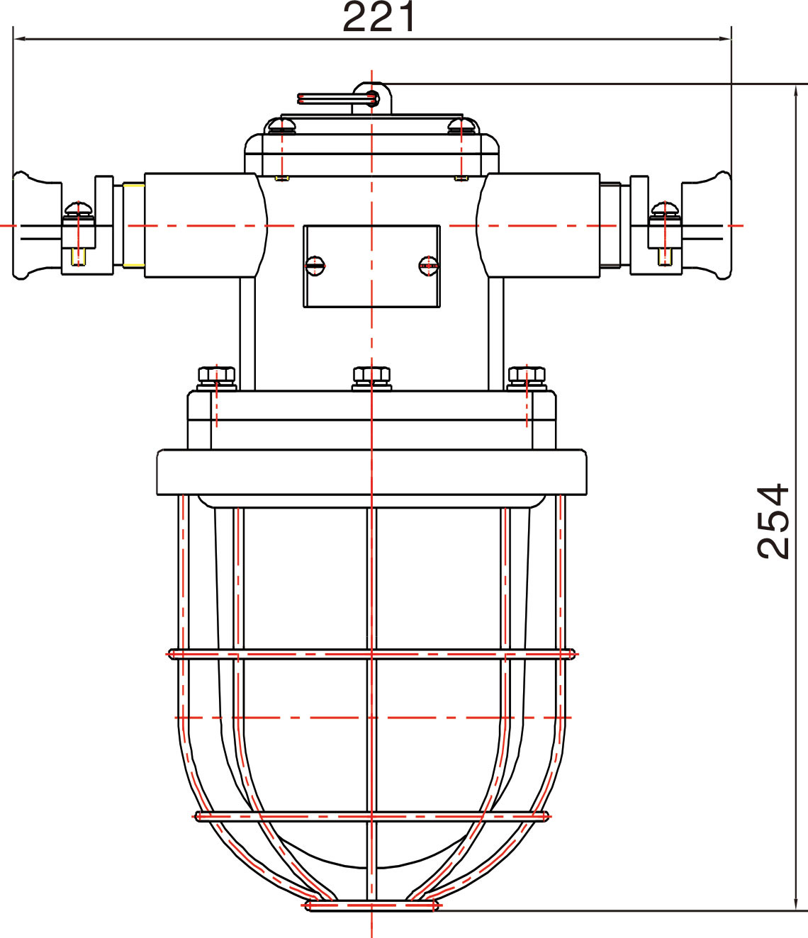 | 13W荧光灯由上盖、上壳体、下壳体、防爆透明玻璃罩、金属保护网等组成,上盖与上壳体用M4螺钉连接,下壳体用M6螺钉与上壳体相连。防爆透明玻璃罩、护罩用M4螺钉固定在下壳体上。上壳体外有M4外接地螺钉、铭牌等,上壳体内有接线板、M4内接地螺钉、直口式压接灯头。下壳内有密封垫、防爆透明玻璃罩及金属保护网,灯头与电源采用直口式压接方式。上盖、上壳体、下壳体、防爆透明玻璃罩之间均有符合规定的隔爆接合面隔爆。 |